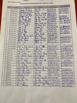 Sau buổi bốc thăm được tổ chức vào lúc 17h00, ngày 21/9/2025, chúng tôi xin trân trọng công bố danh sách khách hàng may mắn trúng thưởng.